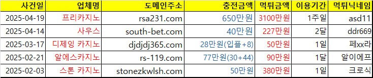 실제 피해 사례가 발생한 사이트들을 모아둔 경고 목록입니다.